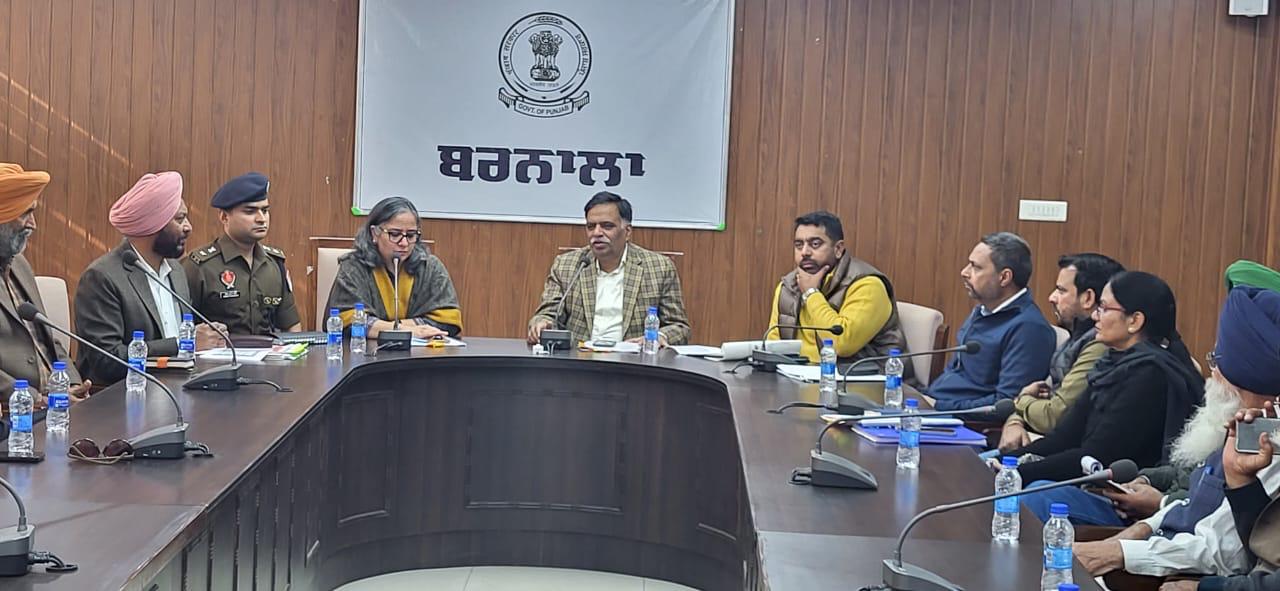 ਕਮਿਸ਼ਨਰ, ਪਟਿਆਲਾ ਮੰਡਲ ਪਟਿਆਲਾ-ਕਮ-ਰੋਲ ਅਬਜਰਵਰ ਸ਼੍ਰੀ ਦਲਜੀਤ ਸਿੰਘ ਮਾਂਗਟ ਅਤੇ ਡਿਪਟੀ ਕਮਿਸ਼ਨਰ-ਕਮ-ਜ਼ਿਲ੍ਹਾ ਚੋਣ ਅਫ਼ਸਰ ਬਰਨਾਲਾ ਸ਼੍ਰੀਮਤੀ ਪੂਨਮਦੀਪ ਕੌਰ ਦੀ ਪ੍ਰਧਾਨਗੀ ਹੇਠ ਵਿਸ਼ੇਸ਼ ਸਰਸਰੀ ਸੁਧਾਈ 01 ਜਨਵਰੀ 2024 ਦੇ ਸਬੰਧ ਵਿੱਚ ਮੀਟਿੰਗ ਕੀਤੀ ਗਈ।