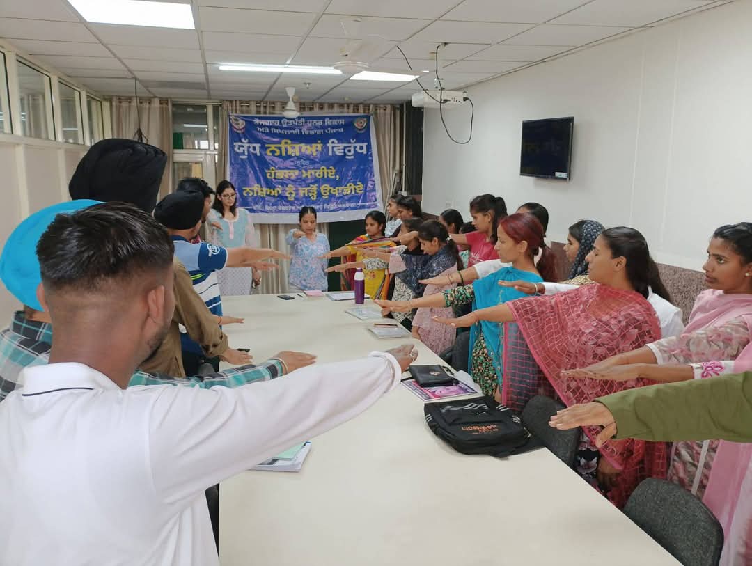 ਜ਼ਿਲ੍ਹਾ ਰੋਜ਼ਗਾਰ ਅਤੇ ਕਾਰੋਬਾਰ ਬਿਊਰੋ ਬਰਨਾਲਾ ਵੱਲੋਂ ਅੱਜ ਦਫ਼ਤਰ ਜ਼ਿਲ੍ਹਾ ਰੋਜ਼ਗਾਰ ਅਤੇ ਕਾਰੋਬਾਰ ਬਿਊਰੋ ਬਰਨਾਲਾ, ਜ਼ਿਲ੍ਹਾ ਪ੍ਰਬੰਧਕੀ ਕੰਪਲੈਕਸ, ਦੂਸਰੀ ਮਜ਼ਿੰਲ, ਬਰਨਾਲਾ ਵਿਖੇ ਪਲੇਸਮੈਂਟ ਕੈਂਪ ਵਿਚ ਸ਼ਾਮਿਲ ਹੋਣ ਵਾਲੇ ਪ੍ਰਾਰਥੀਆਂ ਨੂੰ ਪੰਜਾਬ ਸਰਕਾਰ ਦੀ ਮੁਹਿੰਮ ਯੁੱਧ ਨਸ਼ਿਆਂ ਵਿਰੁੱਧ ਤਹਿਤ ਪ੍ਰਾਰਥੀਆਂ ਨੂੰ ਨਸ਼ਿਆਂ ਤੋਂ ਦੂਰ ਰਹਿਣ ਲਈ ਜਾਗਰੂਕ ਕੀਤਾ ਗਿਆ। ਇਸ ਦੌਰਾਨ ਕਰੀਅਰ ਕਾਉਂਸਲਰ ਮਿਸ. ਸ਼ੁਮਿੰਦਰ ਕੌਰ ਨੇ ਪ੍ਰਾਰਥੀਆਂ ਨੂੰ ਪੰਜਾਬ ਸਰਕਾਰ ਦੀ ਨਸ਼ਿਆਂ ਖਿਲਾਫ਼ ਮੁਹਿੰਮ ਵਿਚ ਵੱਧ ਚੜ ਕੇ ਹਿੱਸਾ ਲੈਣ ਲਈ ਪ੍ਰੇਰਿਤ ਕੀਤਾ ਅਤੇ ਇਹ ਸੰਦੇਸ਼ ਆਪਣੇ ਪਰਿਵਾਰ, ਰਿਸ਼ਤੇਦਾਰਾਂ ਅਤੇ ਸਾਥੀਆਂ ਤੱਕ ਪਹੁੰਚਾਉਣ ਲਈ ਕਿਹਾ। ਇਸ ਸਮਾਗਮ ਦੌਰਾਨ ਲਗਭਗ 30 ਪ੍ਰਾਰਥੀਆਂ ਨੇ ਨਸ਼ਿਆਂ ਤੋਂ ਦੂਰ ਰਹਿਣ ਦੀ ਸਹੁੰ ਚੁੱਕੀ।