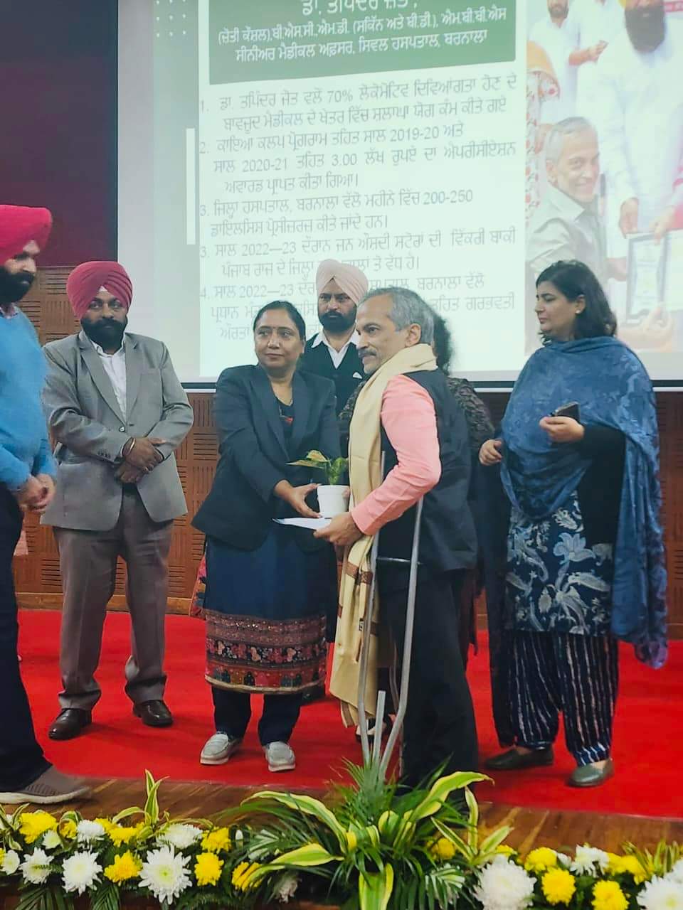 ਸਿਹਤ ਵਿਭਾਗ ਵਿੱਚ ਉੱਦਮੀ ਅਤੇ ਮਿਹਨਤੀ ਡਾਕਟਰੀ ਸੇਵਾਵਾਂ ਦੇਣ ਬਦਲੇ ਡਾ ਤਪਿੰਦਰ ਜੋਤ ਕੌਸ਼ਲ ਸੀਨੀਅਰ ਮੈਡੀਕਲ ਅਫਸਰ , ਸਿਵਲ ਹਸਪਤਾਲ ਬਰਨਾਲਾ ਦਾ “ਅੰਗਹੀਣ ਦਿਵਸ” ਮੌਕੇ ਪੰਜਾਬ ਸਰਕਾਰ ਦੇ ਕੈਬਨਿਟ ਮੰਤਰੀ ਡਾ ਬਲਜੀਤ ਕੌਰ ਵੱਲੋਂ ਚੰਡੀਗੜ ਵਿਖੇ ਹੋਏ ਸੂਬਾ ਪੱਧਰੀ ਸਮਾਗਮ ਵਿੱਚ ਵਿਸ਼ੇਸ਼ ਸਨਮਾਨ ਕੀਤਾ ਗਿਆ ।