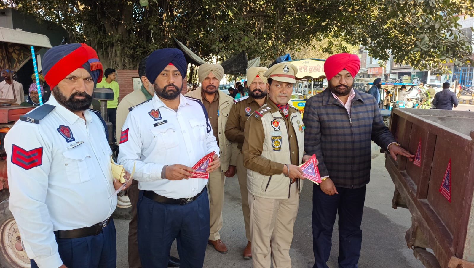 ਡੀਐਸਪੀ ਗੁਰਬਚਨ ਸਿੰਘ ਅਤੇ ਟਰੈਫਿਕ ਇੰਚਾਰਜ ਜਸਵਿੰਦਰ ਸਿੰਘ ਢੀਂਡਸਾ ਵੱਲੋਂ ਬਰਨਾਲਾ ਦੇ ਕਚਹਿਰੀ ਚੌਂਕ ਵਿਖੇ ਵਾਹਨਾਂ ਨੂੰ ਰੋਕ ਕੇ ਉਹਨਾਂ ਤੇ ਰਿਫਲੈਕਟਰ ਸਟੀਕਰ ਲਗਾਉਣ ਦੀ ਮੁਹਿੰਮ ਸ਼ੁਰੂ ਕੀਤੀ ਗਈ ਹੈ।