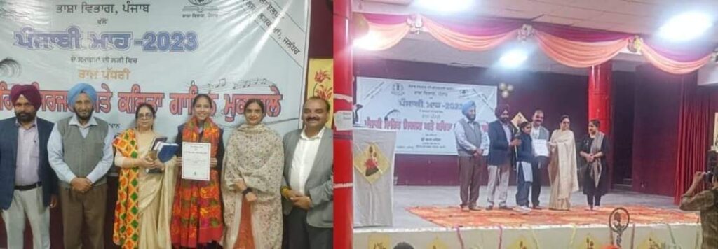 ਸੂਬੇ ਦੇ ਸਿੱਖਿਆ ਅਤੇ ਭਾਸ਼ਾਵਾਂ ਬਾਰੇ ਮੰਤਰੀ ਸ. ਹਰਜੋਤ ਸਿੰਘ ਬੈਂਸ ਦੀ ਰਹਿਨੁਮਾਈ ਅਤੇ ਵਿਭਾਗ ਦੇ ਵਧੀਕ ਡਾਇਰੈਕਟਰ ਡਾ.ਵੀਰਪਾਲ ਕੌਰ ਦੀ ਅਗਵਾਈ ਹੇਠ ਭਾਸ਼ਾ ਵਿਭਾਗ ਵੱਲੋਂ ਸਕੂਲਾਂ ਅਤੇ ਕਾਲਜਾਂ ਦੇ ਵਿਦਿਆਰਥੀਆਂ ਨੂੰ ਸਾਹਿਤ ਅਤੇ ਪੁਸਤਕਾਂ ਨਾਲ ਜੋੜਨ ਲਈ ਲਗਾਤਾਰ ਉਪਰਾਲੇ ਕੀਤੇ ਜਾ ਰਹੇ ਹਨ।ਇਹਨਾਂ ਹੀ ਉਪਰਾਲਿਆਂ ਤਹਿਤ ਭਾਸ਼ਾ ਵਿਭਾਗ ਵੱਲੋਂ ਸਕੂਲੀ ਵਿਦਿਆਰਥੀਆਂ ਦੇ ਸਾਹਿਤ ਸਿਰਜਣ ਅਤੇ ਕਵਿਤਾ ਗਾਇਨ ਮੁਕਾਬਲੇ ਕਰਵਾਏ ਗਏ।ਜ਼ਿਲ੍ਹਾ ਪੱਧਰੀ ਮੁਕਾਬਲਿਆਂ ਉਪਰੰਤ ਰਾਜ ਪੱਧਰ ‘ਤੇ ਹੋਏ ਚਾਰ ਵੰਨਗੀਆਂ ਦੇ ਮੁਕਾਬਲਿਆਂ ਵਿੱਚੋਂ ਦੋ ਵੰਨਗੀਆਂ ਦੇ ਮੁਕਾਬਲਿਆਂ ਵਿੱਚੋਂ ਜ਼ਿਲ੍ਹਾ ਬਰਨਾਲਾ ਦੇ ਸਰਕਾਰੀ ਸਕੂਲਾਂ ਦੀਆਂ ਵਿਦਿਆਰਥਣਾਂ ਨੇ ਪਹਿਲੀਆਂ ਪੁਜੀਸ਼ਨਾਂ ਪ੍ਰਾਪਤ ਕਰਕੇ ਸਕੂਲ ਅਤੇ ਮਾਪਿਆਂ ਦਾ ਨਾਮ ਰੌਸ਼ਨ ਕੀਤਾ।।