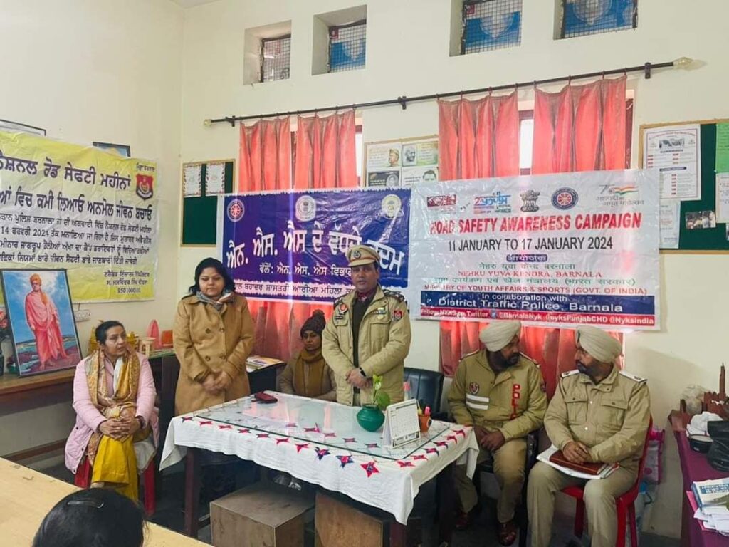 ਨਹਿਰੂ ਯੁਵਾ ਕੇਂਦਰ ਬਰਨਾਲਾ, ਐਨ. ਐਸ. ਐਸ. ਵਿਭਾਗ, ਰੈੱਡ ਰਿਬਨ ਕਲੱਬ ਸ਼੍ਰੀ ਲਾਲ ਬਹਾਦਰ ਸ਼ਾਸਤਰੀ ਆਰੀਆ ਮਹਿਲਾ ਕਾਲਜ ਬਰਨਾਲਾ ਨੇ ਸਾਂਝੇ ਤੌਰ ‘ਤੇ ਰਾਸ਼ਟਰੀ ਸੜਕ ਸੁਰੱਖਿਆ ਹਫਤਾ ਮਨਾਇਆ।