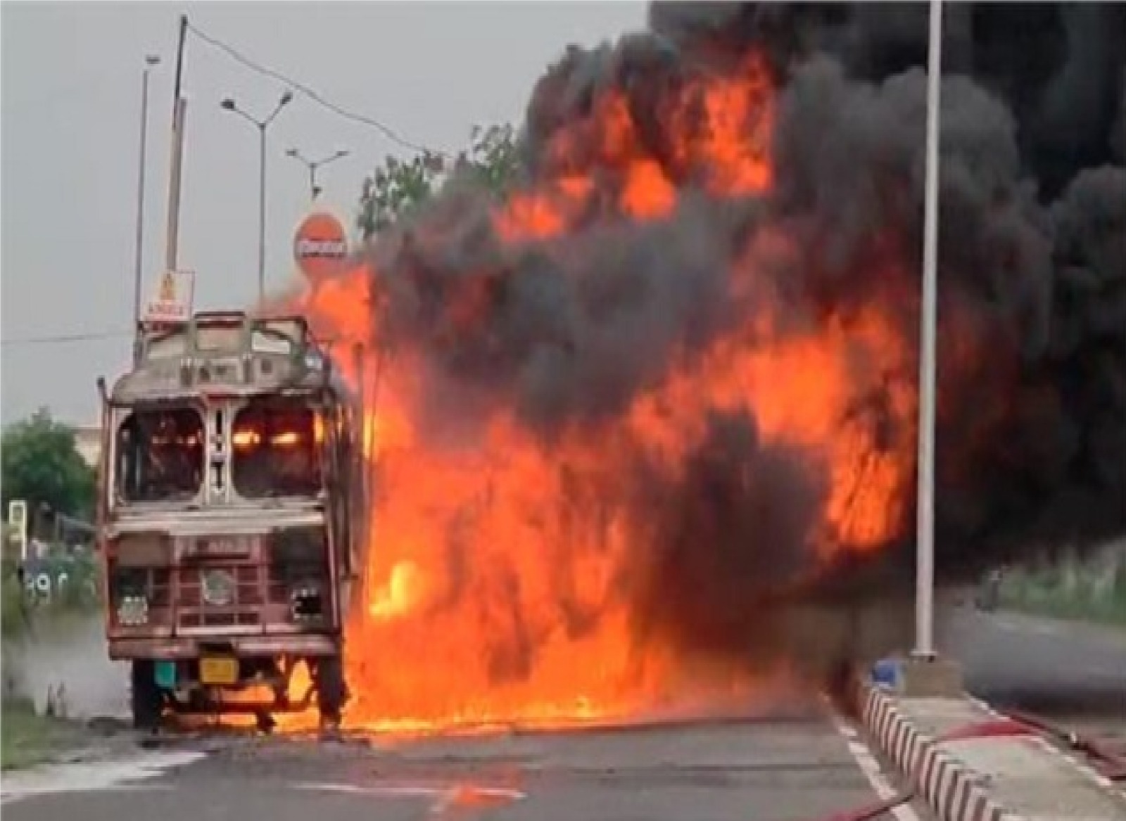 ਅੱਗ ਇੰਨੀ ਭਿਆਨਕ ਸੀ ਕਿ ਟਰੱਕ ਅਤੇ ਉਸ ‘ਤੇ ਲੱਦਿਆ ਸਾਮਾਨ ਸੜ ਕੇ ਸੁਆਹ ਹੋ ਗਿਆ।