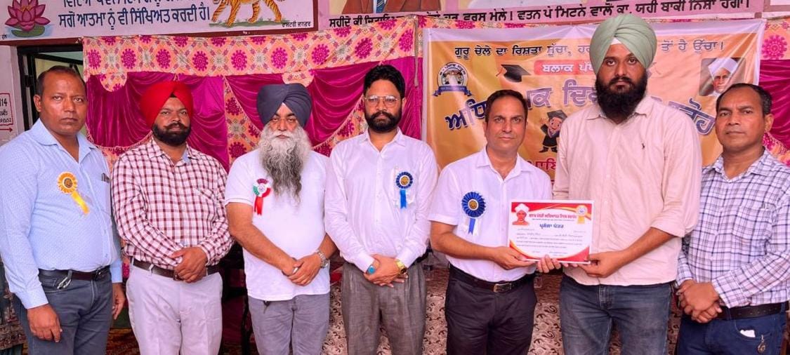 ਰਾਸ਼ਟਰੀ ਅਧਿਆਪਕ ਦਿਵਸ – 2024 ਦੇ ਮੱਦੇਨਜ਼ਰ ਨਕੋਦਰ -2 ਬਲਾਕ ਪੱਧਰੀ ਅਧਿਆਪਕ ਸਨਮਾਨ ਸਮਾਰੋਹ ਦੌਰਾਨ ਸਰਕਾਰੀ ਪ੍ਰਾਇਮਰੀ ਸਕੂਲ, ਭੋਡੀਪੁਰ ਦੇ ਇੰਚਾਰਜ/ਮੁਖੀ ਅਤੇ ਈ.ਟੀ.ਟੀ. ਅਧਿਆਪਕ ਜਸਵੀਰ ਸਿੰਘ ਸਪੁੱਤਰ ਸੁਰਜੀਤ ਸਿੰਘ ਹੁਰਾਂ ਨੂੰ ਵਿਦਿਅਕ ਅਤੇ ਸਹਿ ਵਿਦਿਅਕ ਖੇਤਰ ਵਿੱਚ ਮਾਣਮੱਤੀਆਂ ਕਾਰਗੁਜ਼ਾਰੀਆਂ ਕਰਨ ਹਿੱਤ ਬਲਾਕ ਪ੍ਰਾਇਮਰੀ ਸਿੱਖਿਆ ਅਫ਼ਸਰ ਸ਼੍ਰੀ ਪ੍ਰਦੀਪ ਕੁਮਾਰ ਹੁਰਾਂ ਦੀ ਅਗਵਾਈ ਵਿੱਚ ਸਨਮਾਨਿਤ ਕੀਤਾ ਗਿਆ।