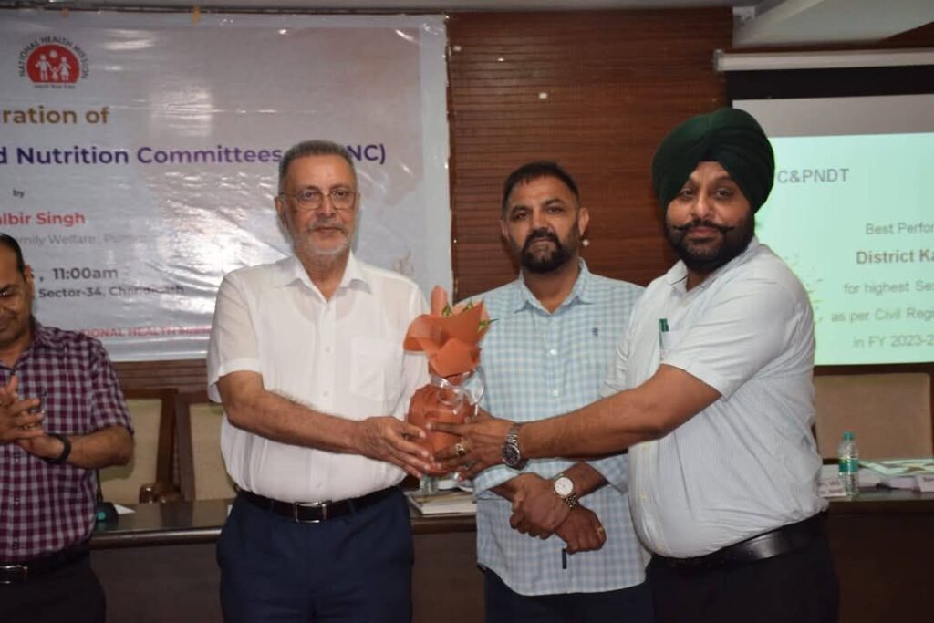 ਪਰਿਵਾਰ ਨਿਯੋਜਨ ਪ੍ਰੋਗਰਾਮ ਅਧੀਨ ਪੰਜਾਬ ਭਰ ‘ਚੋਂ ਵਧੀਆ ਕਾਰਗੁਜ਼ਾਰੀ 100 ਪ੍ਰਤੀਸ਼ਤ ਟੀਚਿਆਂ ਦੀ ਪ੍ਰਾਪਤੀ ਬਦਲੇ ਡਾ. ਬਲਬੀਰ ਸਿੰਘ ਸਿਹਤ ਮੰਤਰੀ ਪੰਜਾਬ ਵੱਲੋਂ ਮੋਹਾਲੀ ਵਿਖੇ ਹੋਏ ਸੂਬਾ ਪੱਧਰੀ ਸਨਮਾਨ ਸਮਾਰੋਹ ਵਿੱਚ ਸਿਹਤ ਵਿਭਾਗ ਬਰਨਾਲਾ ਦਾ ਵਿਸ਼ੇਸ਼ ਸਨਮਾਨ ਕੀਤਾ ਗਿਆ ।