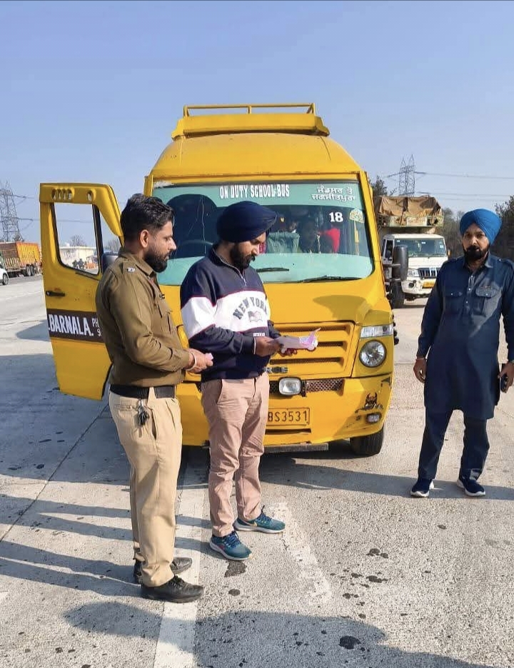 ਡਿਪਟੀ ਕਮਿਸ਼ਨਰ ਬਰਨਾਲਾ ਸ੍ਰੀ ਹਰਪ੍ਰੀਤ ਸਿੰਘ ਦੇ ਦਿਸ਼ਾ ਨਿਰਦੇਸ਼ਾਂ ਅਨੁਸਾਰ ਜ਼ਿਲ੍ਹੇ ਵਿੱਚ ਮਨਾਏ ਜਾ ਰਹੇ ‘ਸੜਕ ਸੁਰੱਖਿਆ ਮਹੀਨੇ’ ਦੇ ਸਬੰਧ ਵਿੱਚ ਜ਼ਿਲ੍ਹਾ ਬਰਨਾਲਾ ਵਿੱਚ ਚੈਕਿੰਗ ਅਤੇ ਜਾਗਰੂਕਤਾ ਮੁਹਿੰਮ ਤੇਜ਼ ਕਰ ਦਿੱਤੀ ਗਈ ਹੈ। ਇਸੇ ਤਹਿਤ ਖੇਤਰੀ ਟਰਾਂਸਪੋਰਟ ਅਫ਼ਸਰ (ਆਰ.ਟੀ.ਓ) ਬਰਨਾਲਾ ਸ੍ਰੀ ਹਰਪ੍ਰੀਤ ਸਿੰਘ ਅਟਵਾਲ, ਪੀ.ਸੀ.ਐਸ. ਵੱਲੋਂ ਜ਼ਿਲ੍ਹੇ ਦੀਆਂ ਵੱਖ-ਵੱਖ ਸੜਕਾਂ ‘ਤੇ ਵਾਹਨਾਂ ਦੀ ਅਚਨਚੇਤ ਚੈਕਿੰਗ ਕੀਤੀ ਗਈ। ਇਸ ਚੈਕਿੰਗ ਦੌਰਾਨ ਖ਼ਾਸ ਤੌਰ ‘ਤੇ ਸਕੂਲੀ ਵਾਹਨਾਂ ਦੀ ਸੁਰੱਖਿਆ ਨੂੰ ਮੁੱਖ ਰੱਖਿਆ ਗਿਆ। ਚੈਕਿੰਗ ਦੌਰਾਨ ਸੁਰੱਖਿਆ ਨਿਯਮਾਂ ਦੀ ਉਲੰਘਣਾ ਕਰਨ ਵਾਲੀਆਂ 3 ਸਕੂਲੀ ਬੱਸਾਂ ਦੇ ਚਲਾਨ ਕੱਟੇ ਗਏ। ਇਸ ਮੌਕੇ ਸ੍ਰੀ ਅਟਵਾਲ ਨੇ ਸਖ਼ਤ ਸ਼ਬਦਾਂ ਵਿੱਚ ਕਿਹਾ ਕਿ ਸਕੂਲੀ ਬੱਚਿਆਂ ਦੀ ਸੁਰੱਖਿਆ ਨਾਲ ਕੋਈ ਵੀ ਸਮਝੌਤਾ ਨਹੀਂ ਕੀਤਾ ਜਾਵੇਗਾ ਅਤੇ ਜੋ ਵੀ ਵਾਹਨ ਨਿਯਮਾਂ ਦੀ ਪਾਲਣਾ ਨਹੀਂ ਕਰੇਗਾ, ਉਸ ਵਿਰੁੱਧ ਸਖ਼ਤ ਕਾਰਵਾਈ ਕੀਤੀ ਜਾਵੇਗੀ। ਇਸ ਦੇ ਨਾਲ ਹੀ, ਸੜਕ ਸੁਰੱਖਿਆ ਮਹੀਨੇ ਦੇ ਤਹਿਤ ਸਹਾਇਕ ਜ਼ਿਲ੍ਹਾ ਟਰਾਂਸਪੋਰਟ ਅਫ਼ਸਰ ਸ੍ਰੀ ਜਸ਼ਨਜੋਤ ਸਿੰਘ ਸਿੱਧੂ ਵੱਲੋਂ ਟਰੱਕ ਯੂਨੀਅਨ ਤਪਾ ਵਿਖੇ ਇੱਕ ਵਿਸ਼ੇਸ਼ ਸੜਕ ਸੁਰੱਖਿਆ ਜਾਗਰੂਕਤਾ ਕੈਂਪ ਲਗਾਇਆ ਗਿਆ। ਕੈਂਪ ਦੌਰਾਨ ਟਰੱਕ ਡਰਾਈਵਰਾਂ ਅਤੇ ਆਪਰੇਟਰਾਂ ਨੂੰ ਸੰਬੋਧਨ ਕਰਦਿਆਂ ਉਨ੍ਹਾਂ ਟ੍ਰੈਫਿਕ ਨਿਯਮਾਂ ਦੀ ਮਹੱਤਤਾ ਬਾਰੇ ਦੱਸਿਆ। ਉਨ੍ਹਾਂ ਡਰਾਈਵਰਾਂ ਨੂੰ ਅਪੀਲ ਕੀਤੀ ਕਿ ਉਹ ਵਾਹਨ ਚਲਾਉਂਦੇ ਸਮੇਂ ਨਿਯਮਾਂ ਦੀ ਸਖ਼ਤੀ ਨਾਲ ਪਾਲਣਾ ਕਰਨ, ਨਸ਼ੇ ਦੀ ਹਾਲਤ ਵਿੱਚ ਗੱਡੀ ਨਾ ਚਲਾਉਣ ਅਤੇ ਧੁੰਦ ਦੇ ਮੌਸਮ ਵਿੱਚ ਵਿਸ਼ੇਸ਼ ਸਾਵਧਾਨੀਆਂ ਵਰਤਣ ਤਾਂ ਜੋ ਕੀਮਤੀ ਜਾਨਾਂ ਨੂੰ ਬਚਾਇਆ ਜਾ ਸਕੇ। ਇਸ ਮੁਹਿੰਮ ਦੌਰਾਨ ਵਿਭਾਗ ਦੇ ਹੋਰ ਕਰਮਚਾਰੀ ਵੀ ਹਾਜ਼ਰ ਸਨ, ਜਿਨ੍ਹਾਂ ਨੇ ਵਾਹਨ ਚਾਲਕਾਂ ਨੂੰ ਸੜਕੀ ਸੁਰੱਖਿਆ ਸਬੰਧੀ ਪੈਂਫਲੇਟ ਵੀ ਵੰਡੇ।