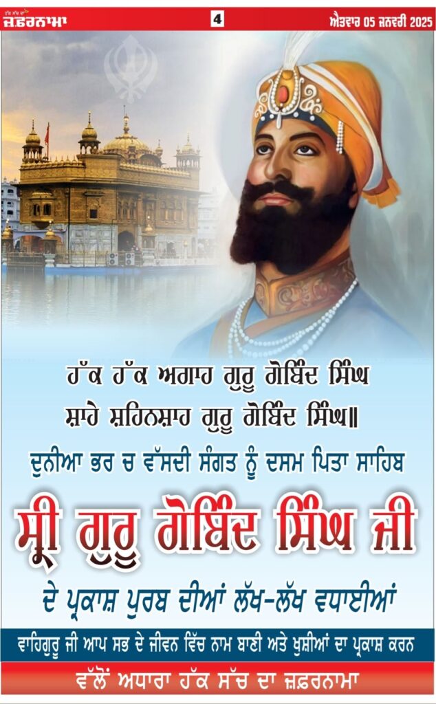 05-01-2025 JafarnamaDownload Post navigationE paper 4/1/25 ਹੱਕ ਸੱਚ ਦਾ ਜ਼ਫ਼ਰਨਾਮਾ E paper 6/1/25 ਹੱਕ ਸੱਚ ਦਾ ਜ਼ਫਰਨਾਮਾ