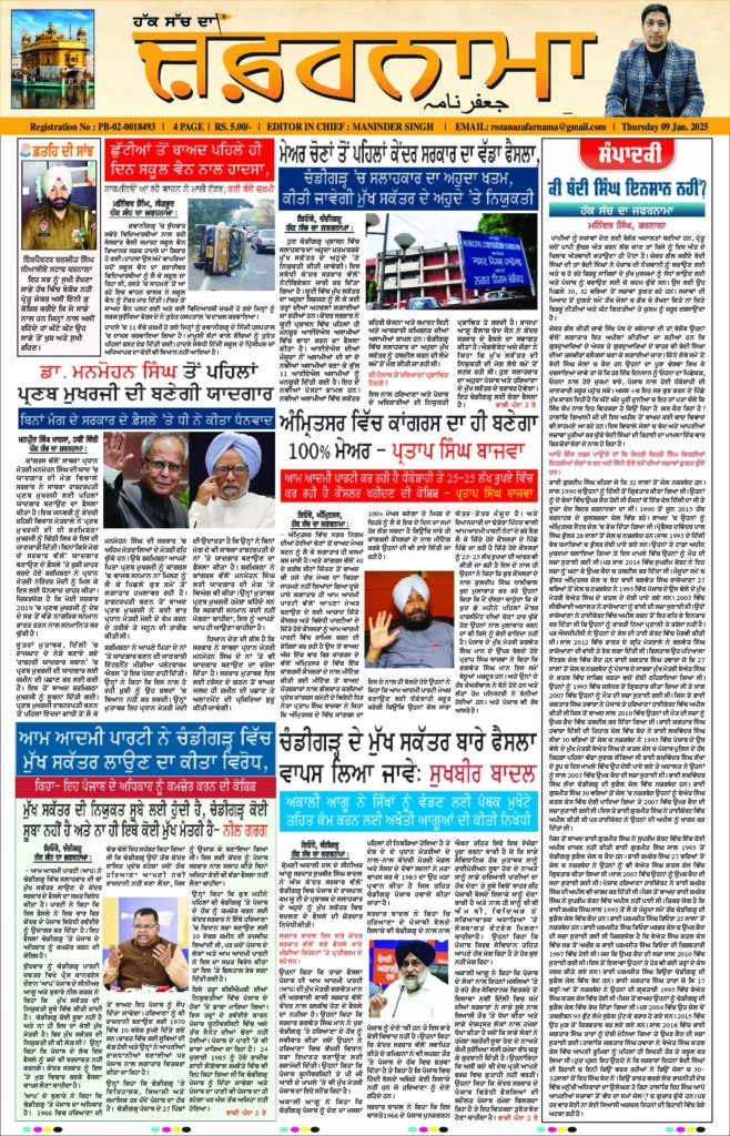 09-01-2025 ZafarnamaE paper Post navigationE paper 8/1/25 ਹੱਕ ਸੱਚ ਦਾ ਜਫਰਨਾਮਾ E paper 15 ਜਨਵਰੀ ਜ਼ਫ਼ਰਨਾਮਾ